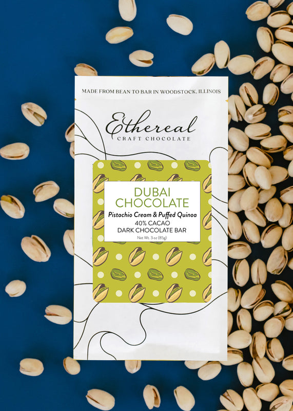 You say Dubai and we say Hello! Thin chocolate shell, delicious pistachio and puffed quinoa center.